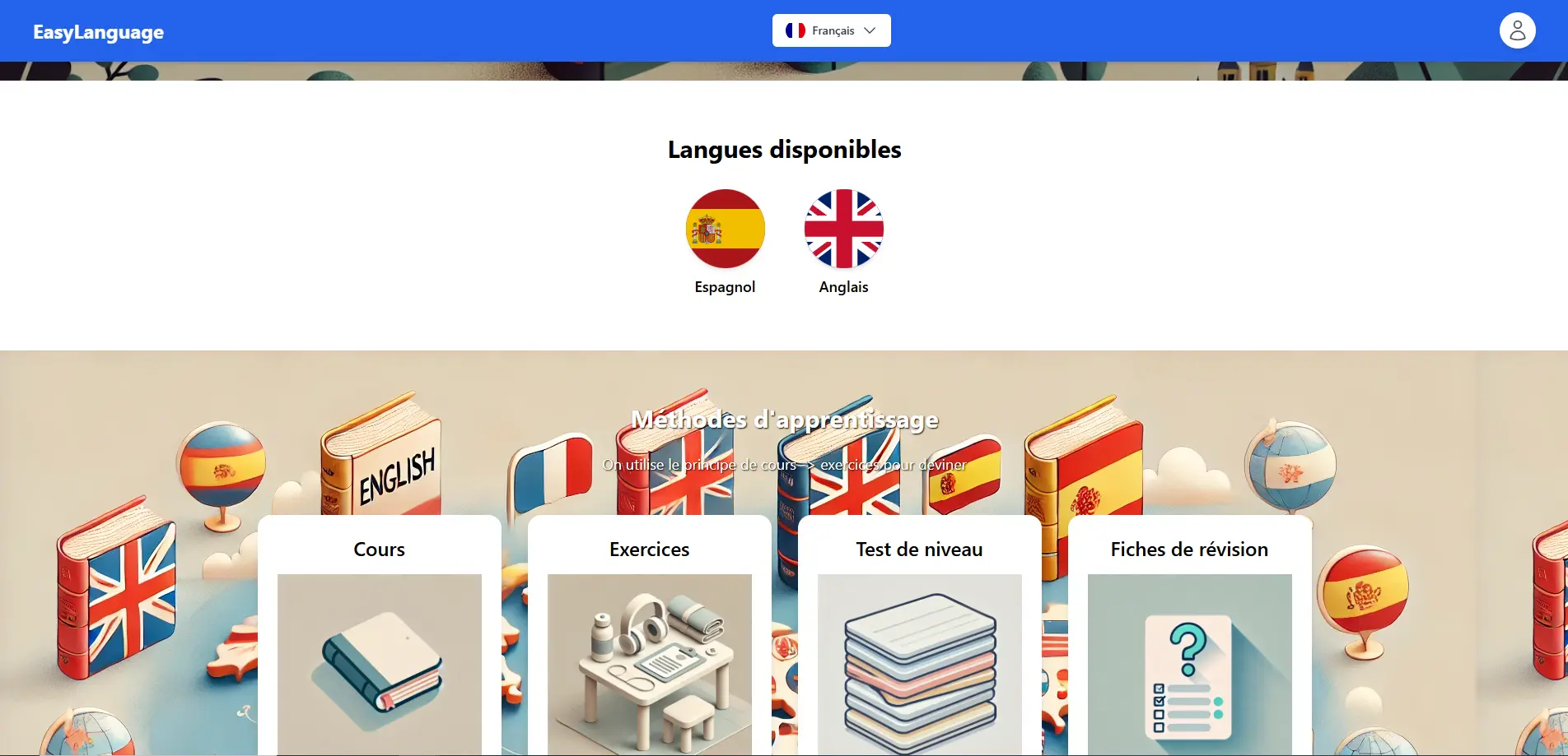 EasyLanguage vous offre un apprentissage ludique et 100 % gratuit de l’anglais et de l’espagnol, grâce à des cours interactifs, des exercices variés et un suivi personnalisé de vos progrès. Accessible depuis n’importe quel appareil, sans limite de temps ni de contenu, notre plateforme vous accompagne à votre rythme pour maîtriser rapidement les bases et gagner en confiance à l’oral comme à l’écrit.